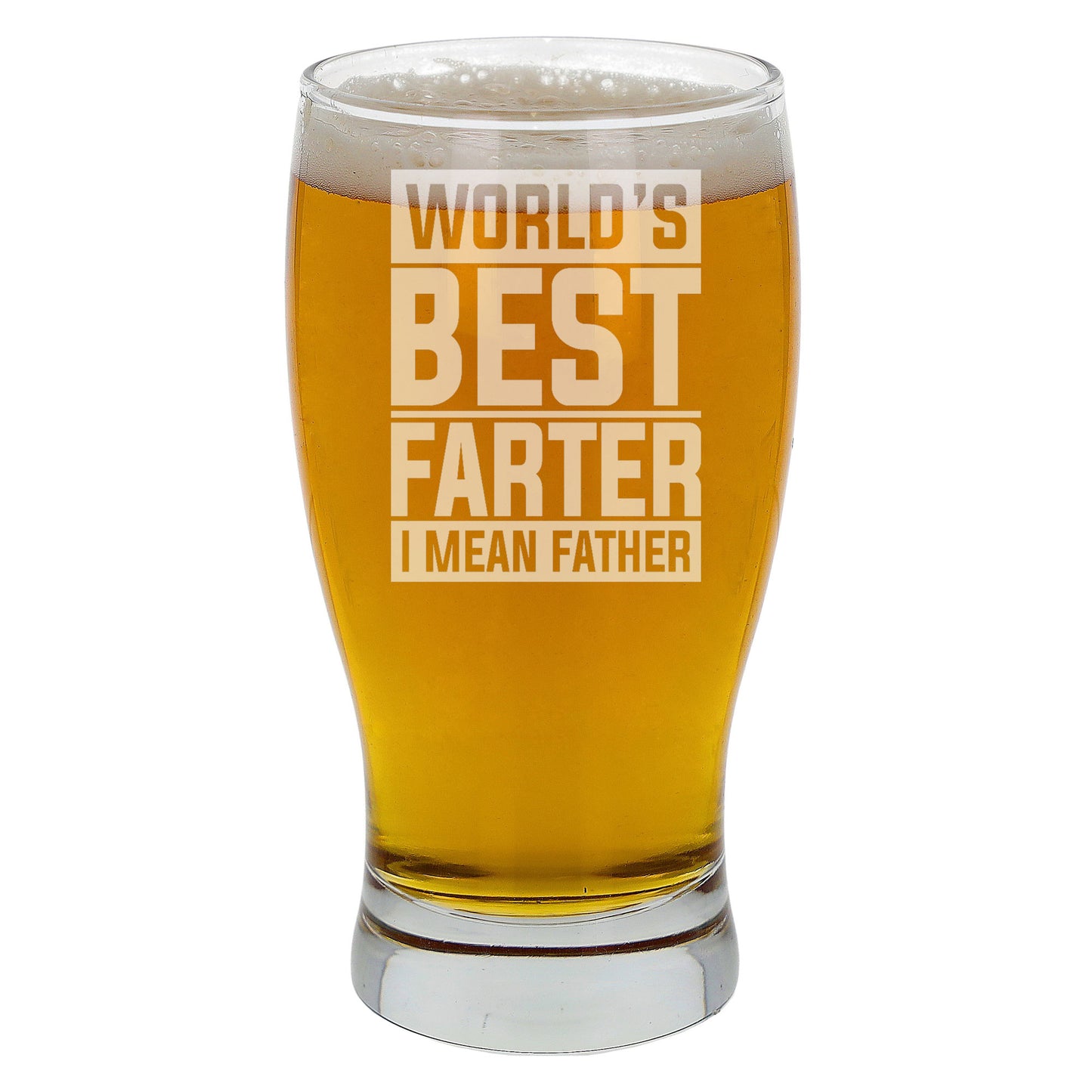 “Worlds Best Farter I Mean Father” Engraved Beer Glass For Dad and/or Coaster Set